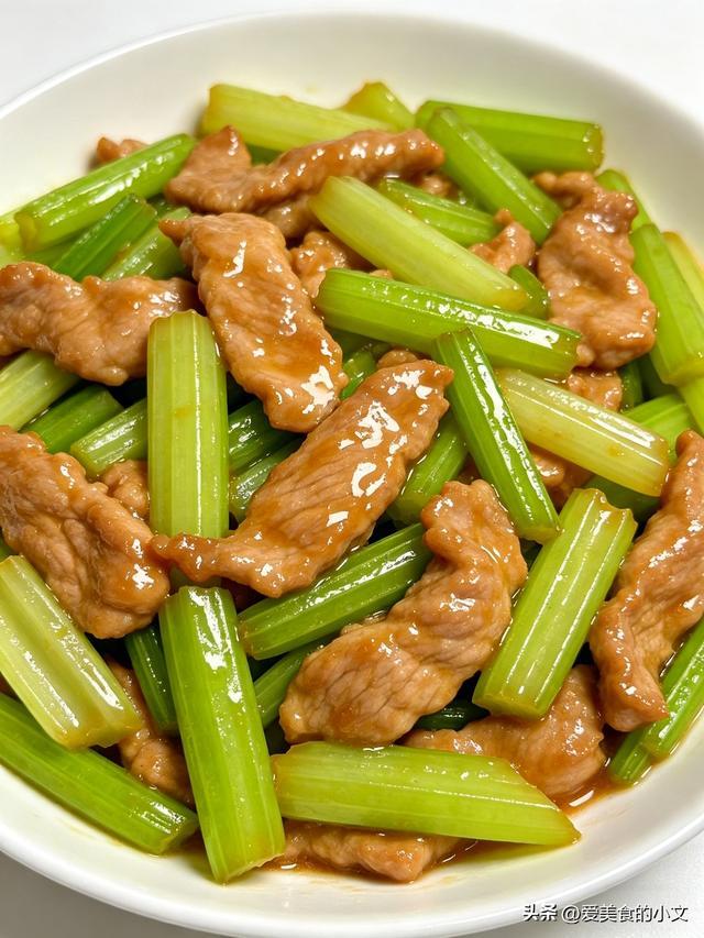 西芹脆嫩、肉片滑嫩,我家每周吃4次,吃完眼睛润润的,看电脑、看手机都不费劲,越吃眼睛越舒服!